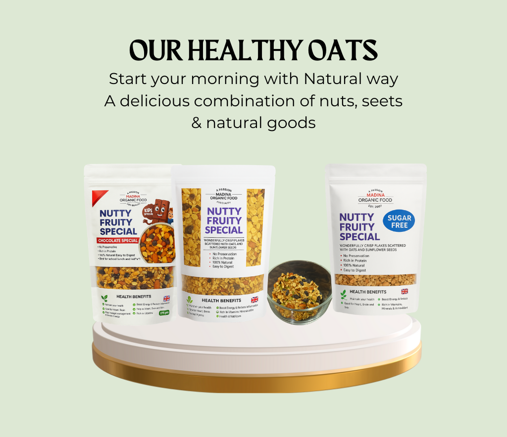 “Main usually oats pasand nahi karta tha, lekin Madina Organic ka Nutty Fruity Special try kiya toh addict ho gaya. Fruity crunch aur nuts ka mix bohat tasty hai. Ab roz gym ke baad yeh hi khata hoon—light bhi lagta hai aur energy bhi milti hai. Sabse best cheez yeh ke bilkul organic hai, koi extra sugar ya artificial taste nahi. Health aur taste ka perfect combo!”